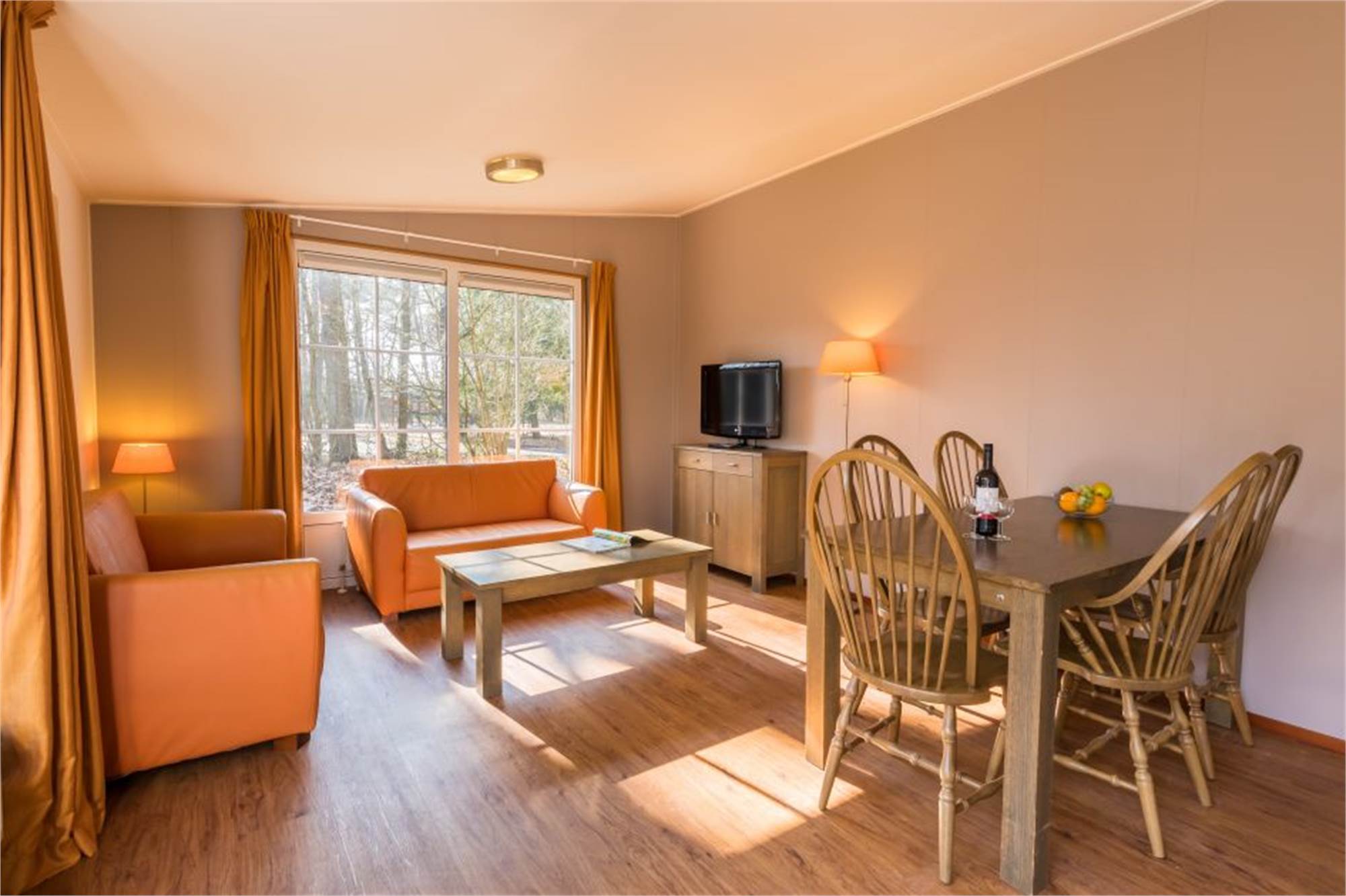 This detached, threshold-free chalet is suitable for 4 people and adapted for disabled visitors. The living room has a separate dining area and in the kitchen you will find a combination microwave and coffee machine among other things. In addition, there are 2 bedrooms each with 2 single box spring beds and there is an adapted bathroom with shower and toilet. The chalet is also equipped with a furnished terrace and free Wi-Fi is available.