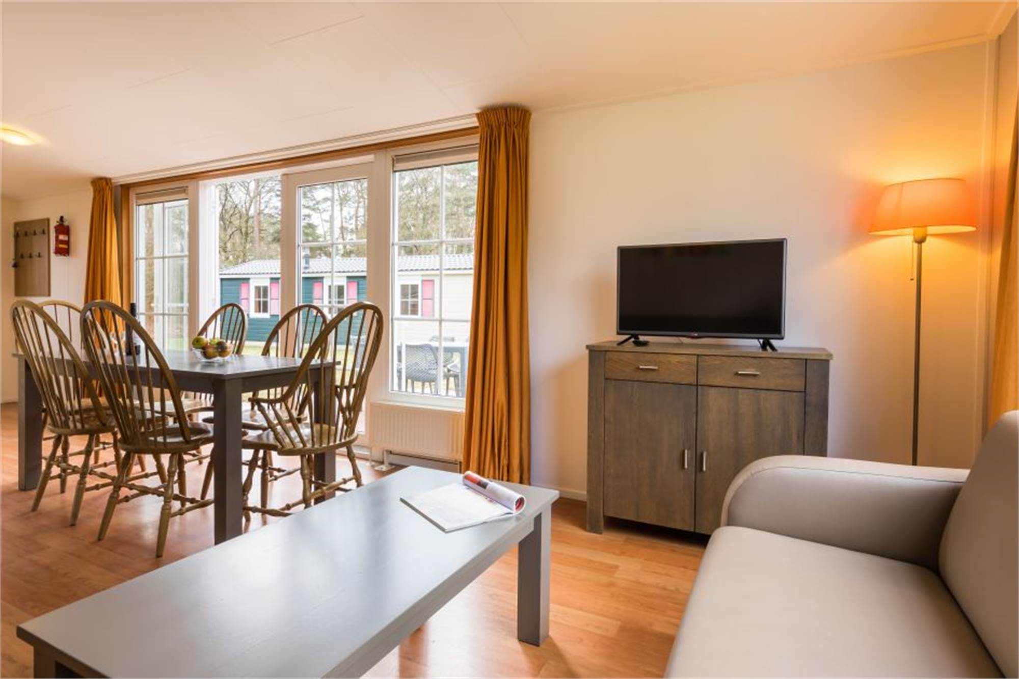 This detached chalet is suitable for 6 people. The living room has a separate dining area and in the kitchen you will find a combination microwav and a filter coffee machine among other things. In addition, there are 3 bedrooms each with 2 single beds and a bathroom with shower and a separate toilet. The chalet is also equipped with a furnished terrace and free Wi-Fi is available.