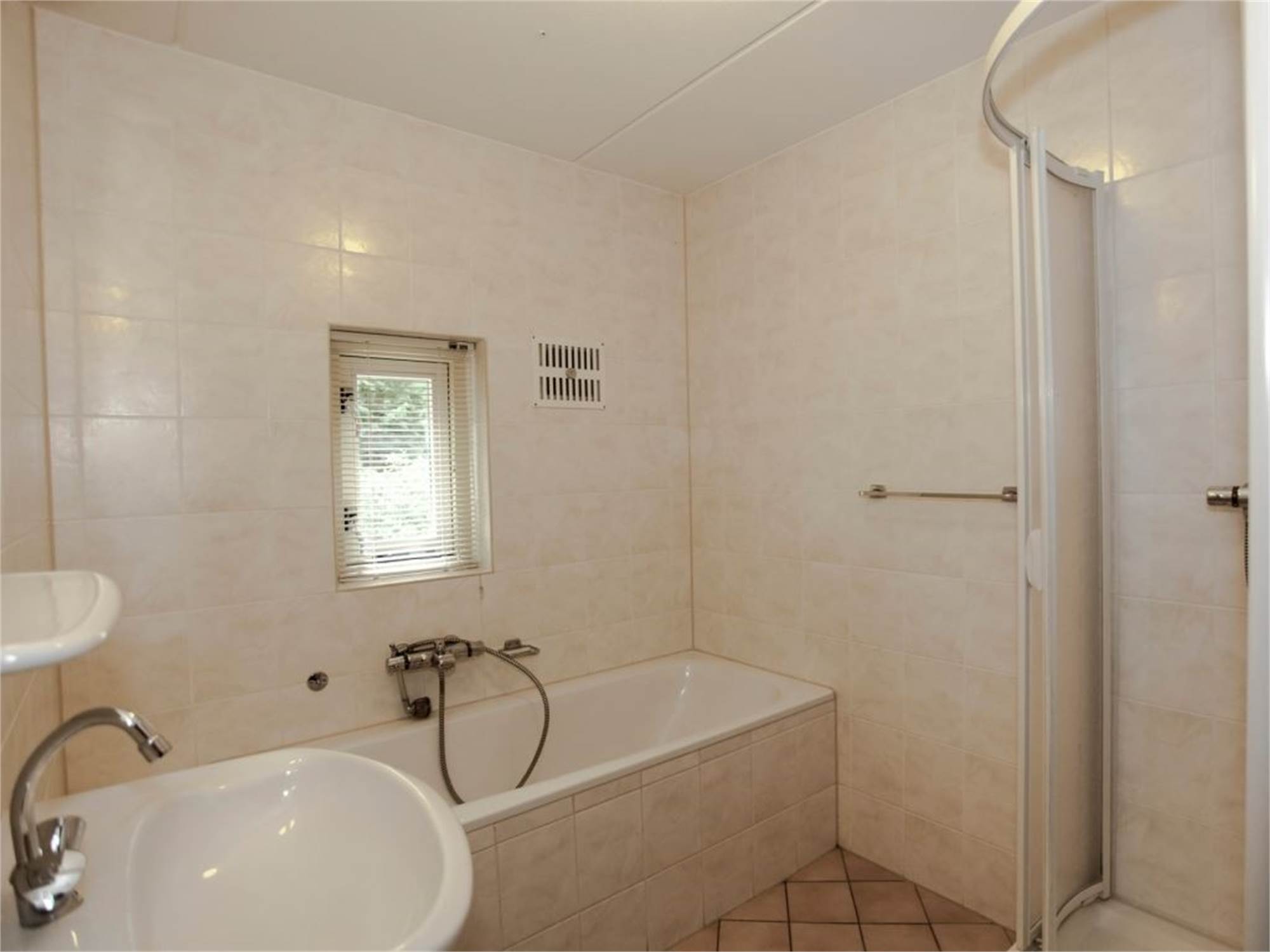 Bathroom with bathtub, shower cubicle and washbasin
