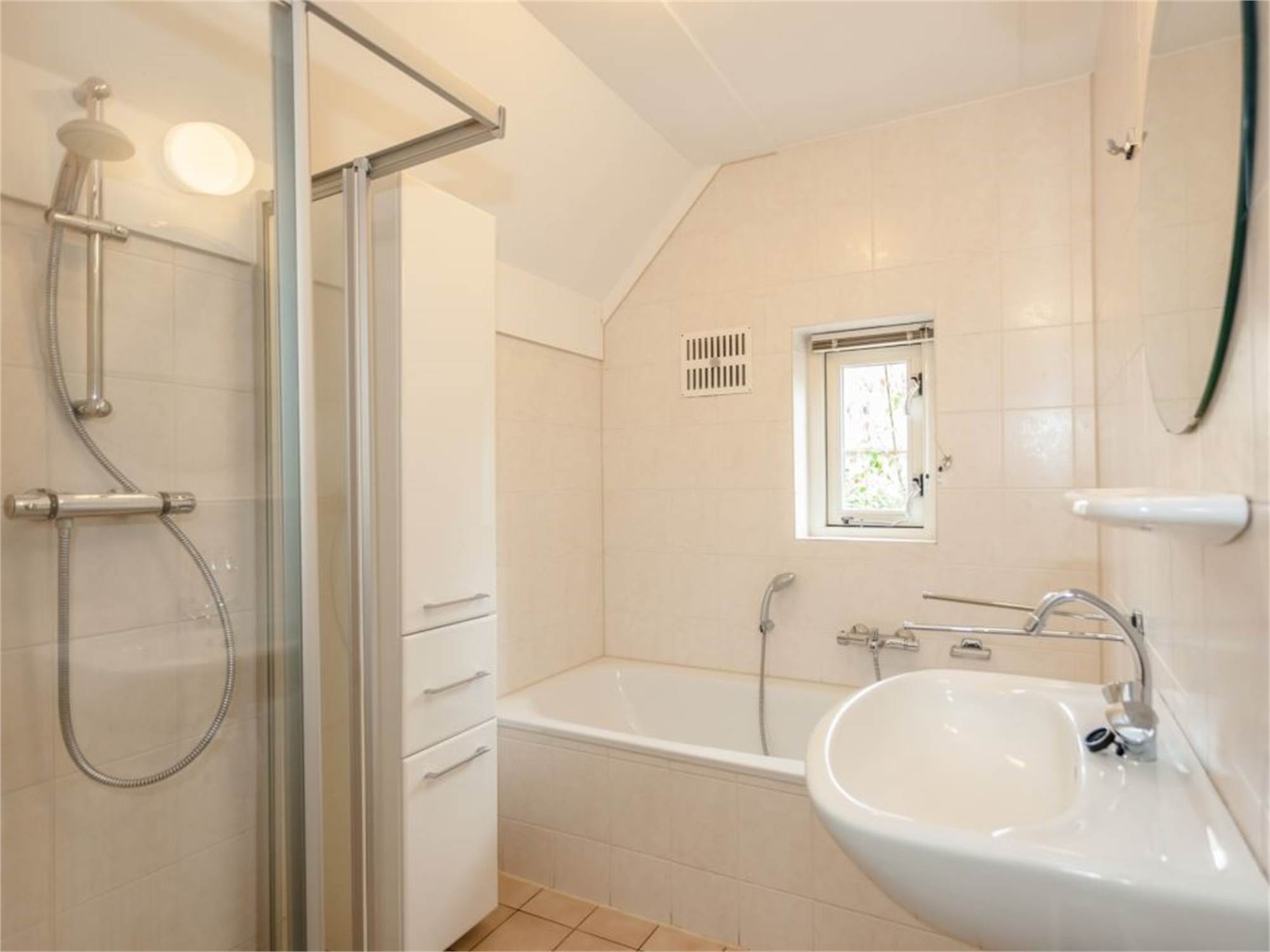 Bathroom with shower cubicle and washbasin