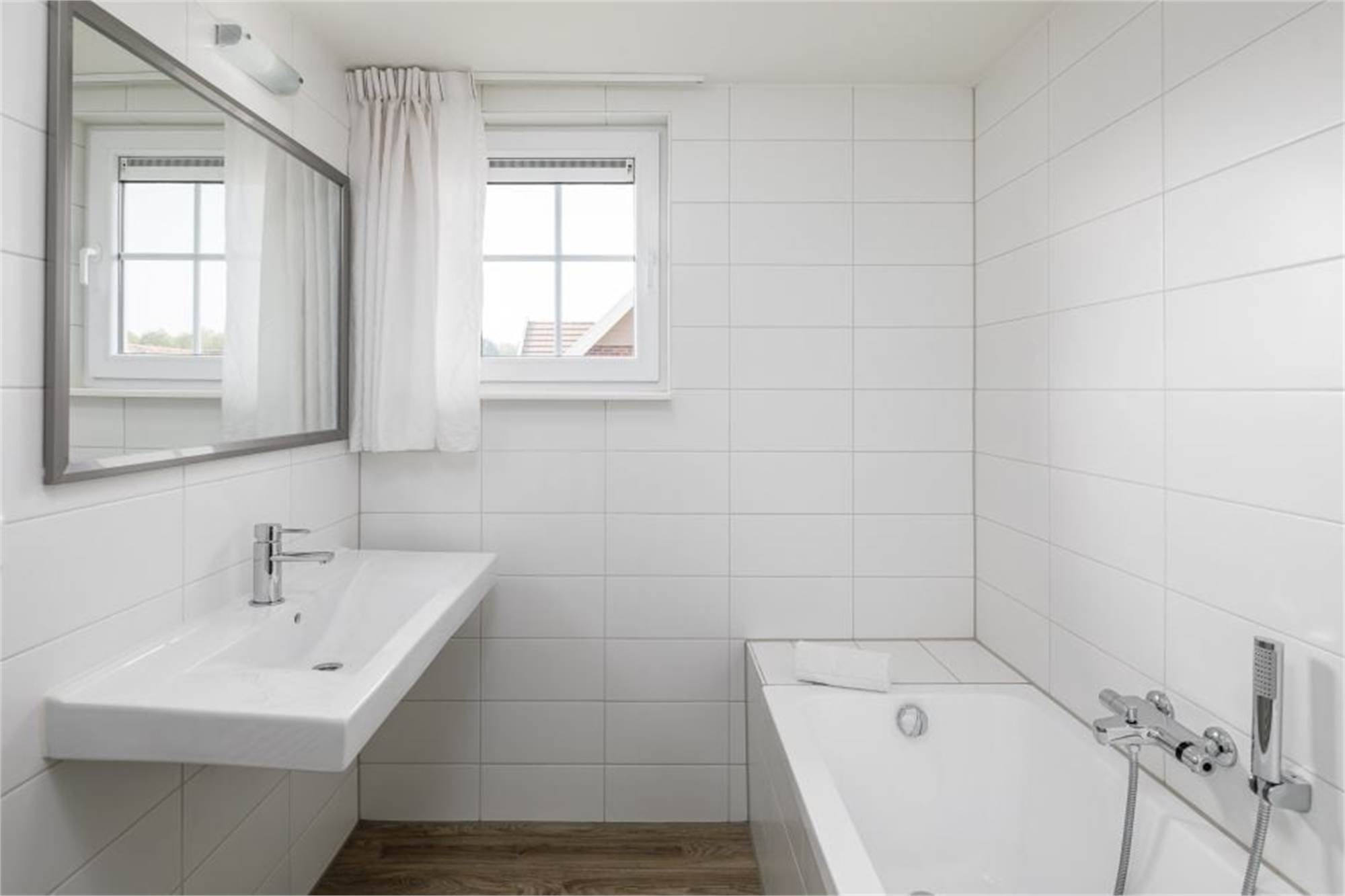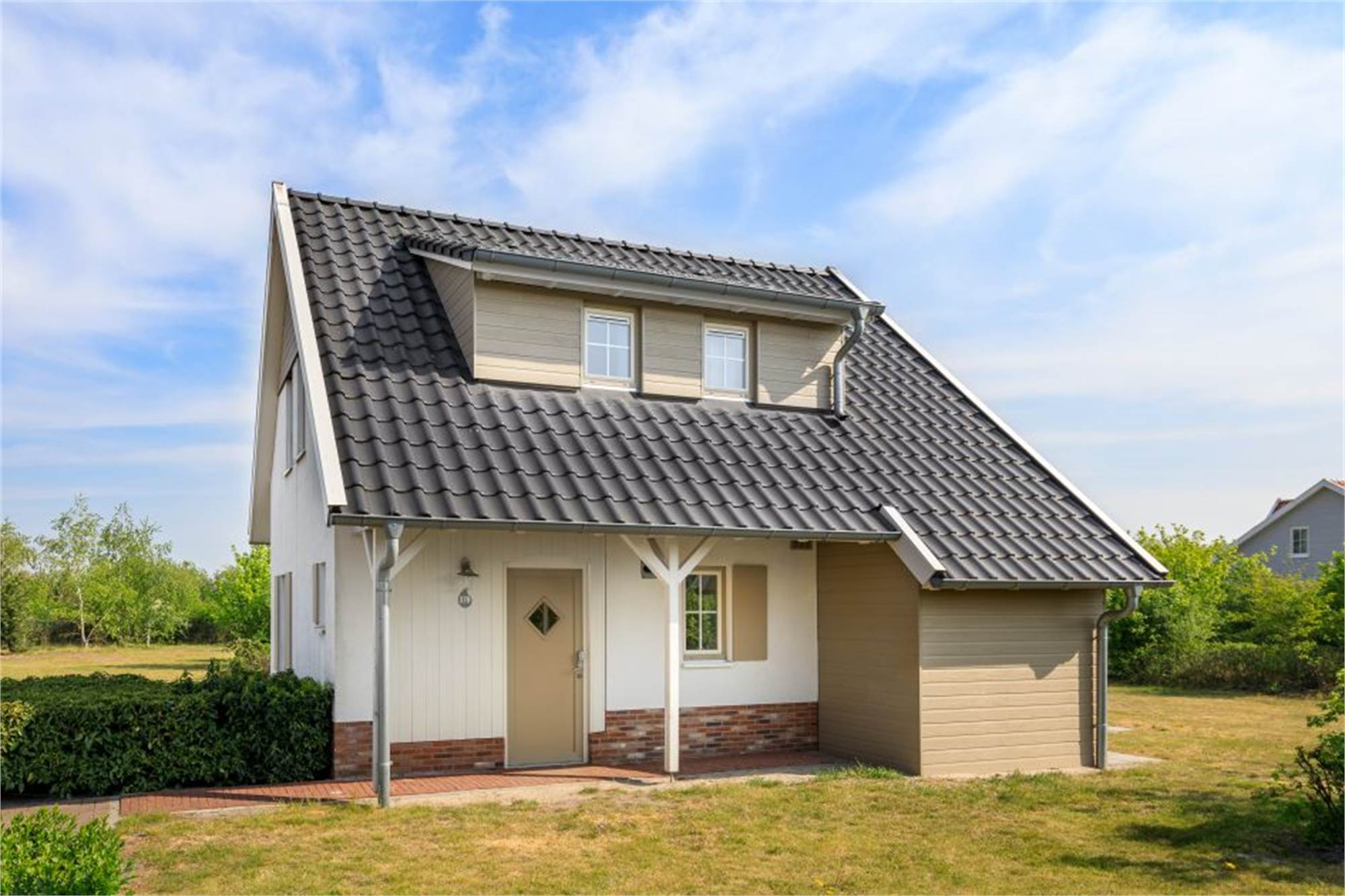 This restyled, luxury villa at Résidence Klein Vink is suitable for six people. The entrance hallway brings you to the sunny living room with French doors to the terrace. The kitchen is equipped with top-range built-in appliances, including a dishwasher, microwave-oven and coffee maker. On the ground floor is a bedroom with twin beds and a washbasin. Upstairs are two cheerful bedrooms, both with twin beds. You can enjoy the luxury of two bathrooms. The accommodation features an infra-red sauna. There are separate toilets on both floors. There is also a washing machine in the storage room. Wi-Fi is available free of charge. You can indicate a preference for a villa with a thatched roof and/or a bay window for more living space (96m² instead of 87m²).